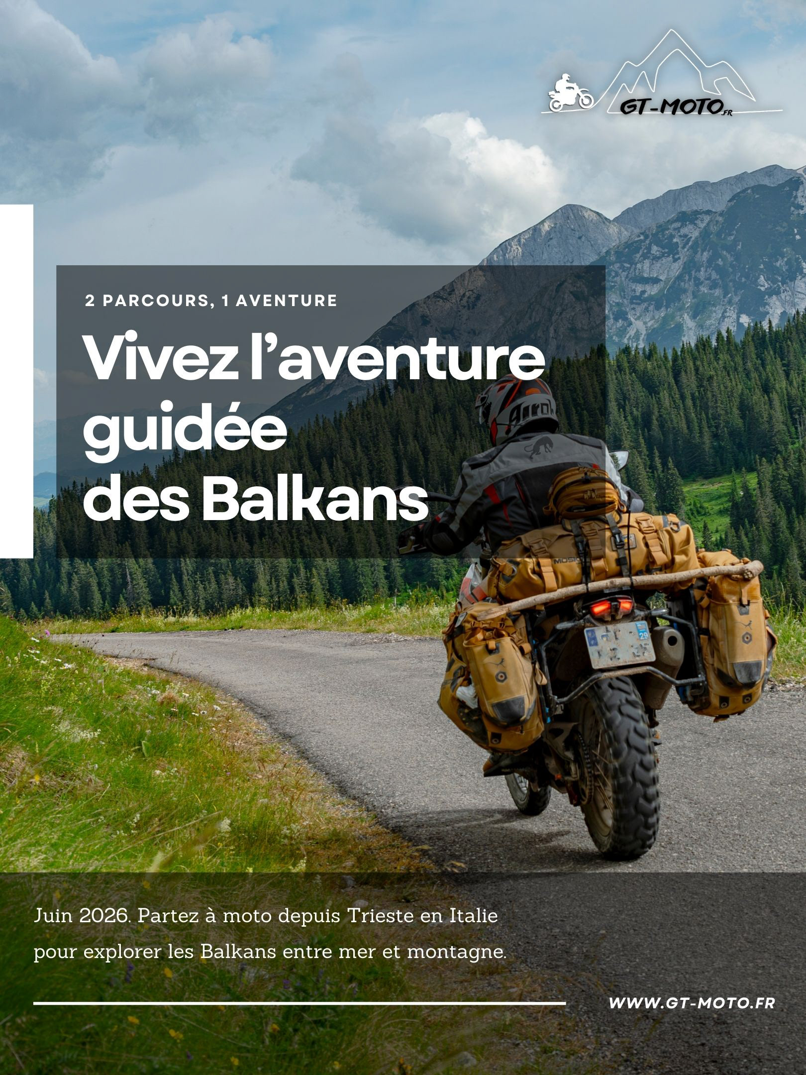En juin 2026, nous repartons sur les routes des Balkans. Du 15 au 26 juin, nous vous guidons pour une randonnée moto itinérante depuis Trieste (Italie), direction la Croatie, la Bosnie-Herzégovine et le Monténégro.